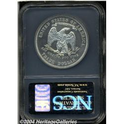 <B>1879<T$1>--Impaired Proof, Harshly Cleaned--NCS.</B></I> The surfaces of this proof only Trade dollar are bright, untoned, and moderately to heavily hairlined. A particularly heavy hairline patch is found in the field below the outstretched right arm of Liberty. The design elements are well brought out.<BR><I>From The Barry Donnell Collection, Part Two.</B></I> <BR><BR><B>Important notice:</B> Heritage usually auctions material at the rate of 200-250 lots per hour. On some occasions eBay Live bid software or the Internet may not be able to keep up with the pace of the auction. We recommend placing a realistic absentee bid now as insurance to avoid disappointment. Occasionally the auctioneer may eliminate or reject an eBay Live bid, and the auctioneer may also reopen a lot after the close of the eBay live bidding (usually because we missed an audience bid), and may reject your bid even if it shows you as the winning bidder. By bidding via eBay Live, you agree that Heritage may award the lot to another bidder at its sole discretion under the circumstances described above or any other reasonable circumstances. Since eBay bids are not shown to us until we open the lot on the floor, we treat those bids just like floor bids. In most cases the floor responds before the eBay bid is presented to us, due to Internet lag time, so for consistency we have made it a policy that floor bids are always considered first over tie eBay live bids. Also please note that all Heritage lots purchased through eBay Live carry a 20% Buyer's Premium. Please make sure you read the Terms and Conditions before you bid. </span></font></tr></table></td></tr></table>