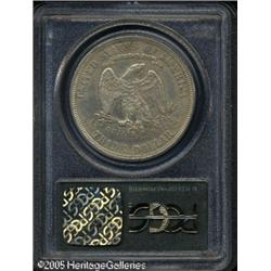 <B>1879 T$1 PR55 PCGS.</B></I> Well struck and lightly worn, on the high points of the design, with watery, semi-prooflike reflectivity in the fields, attractive golden-gray coloration, and numerous fine hairlines in the fields, on each side. Very slightly abraded, for an AU coin. Lot:7438