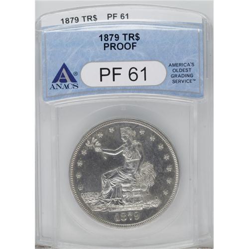 <B>1879 T$1 PR61 ANACS.</B></I> The obverse is strongly reflective, though the reverse has thick silver-gray haze that obscures the mirrors somewhat. Exquisitely struck with a plethora of hairlines and isolated contact marks in the fields.<BR><BR><b>Shipping:</b> Coins & Currency (<a target="_blank" href="http://www.heritageauctions.com/common/shipping.php">view shipping information</a>)