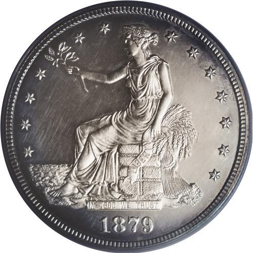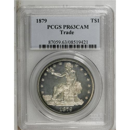 <B>1879 T$1 PR63 Cameo PCGS.</B></I> Pleasing frost distinguishes the penetratingly struck devices from the pearl-gray fields. A few faint hairlines are present, as expected of the grade. Die doubling is noted on E PLURIBUS UNUM and other reverse elements. A popular proof-only issue. Population: 18 in 63 Cameo, 45 finer (10/06).<BR><BR><b>Shipping:</b> Coin/Currency (<a target="_blank" href="http://www.heritageauctions.com/common/shipping.php">view shipping information</a>)