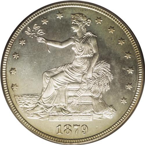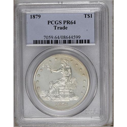1879 T$1 PR64 PCGS. The large, open fields of the Trad