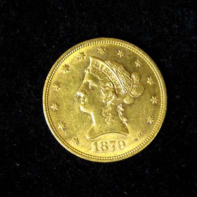 1879 TEN DOLLAR LIBERTY HEAD GOLD PIECE BRILLIANT UNCIRCULATED. #87