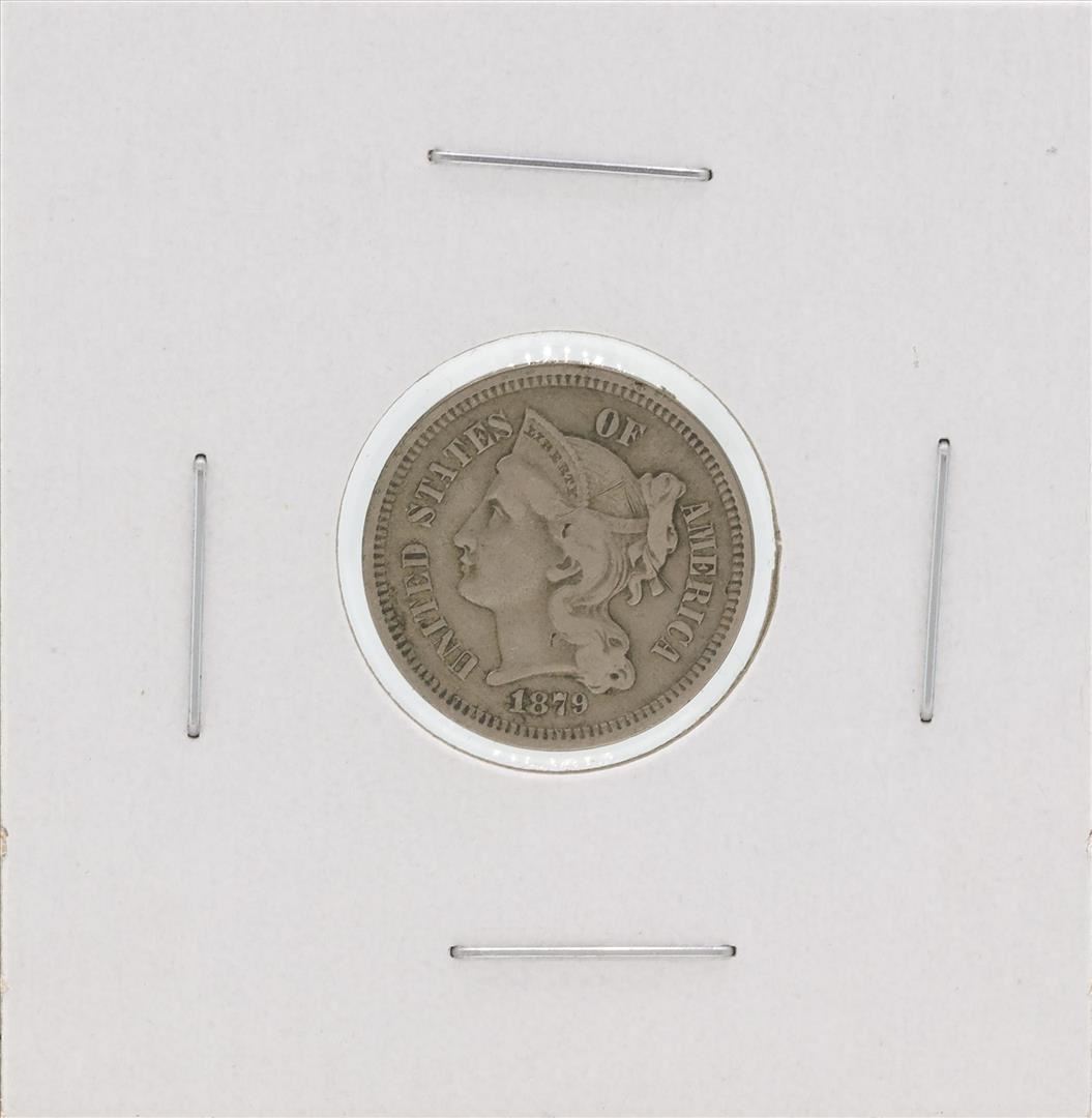 One 1879 Three Cent Nickel Coin.