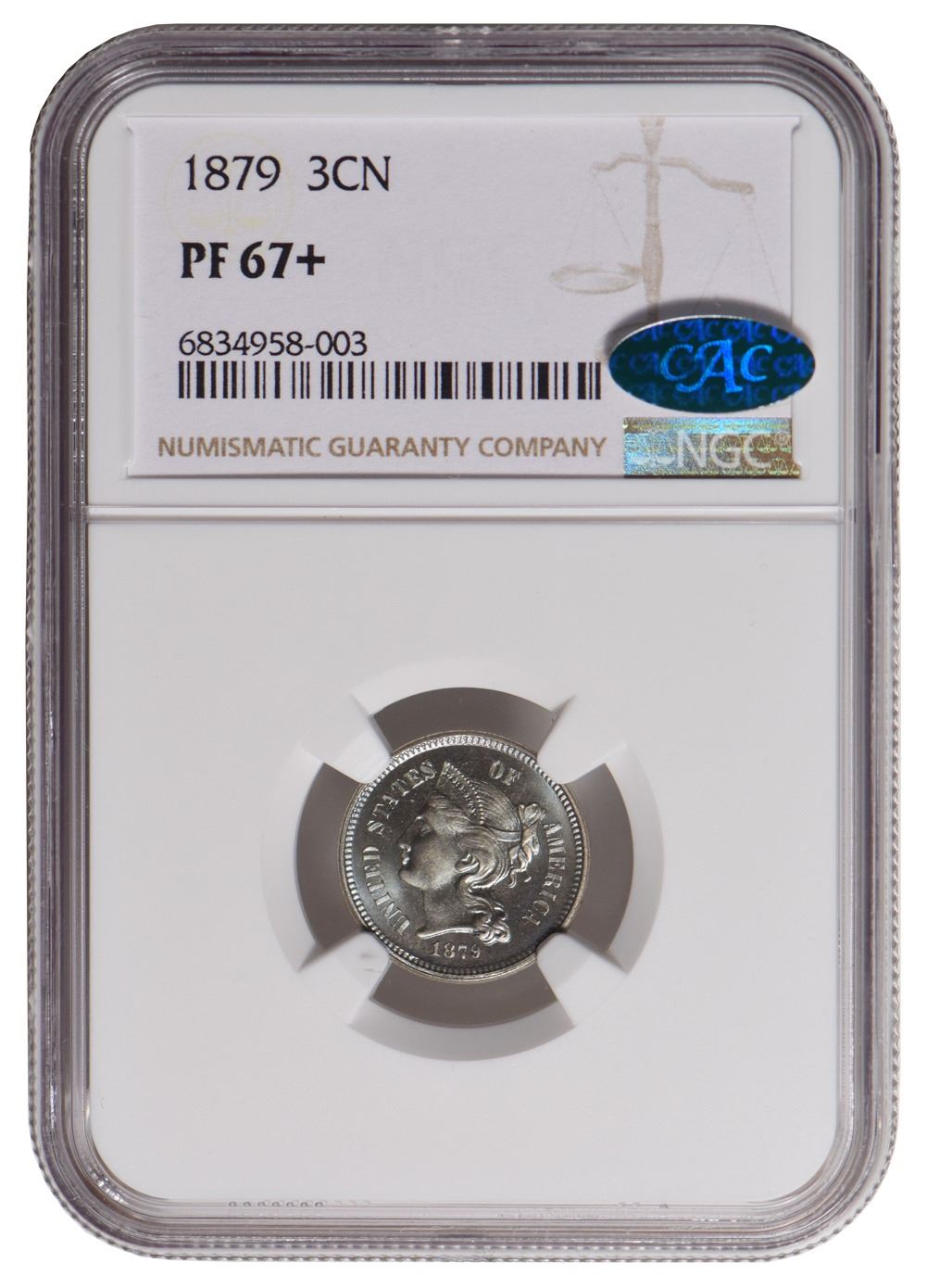 One 1879 Three Cent Nickel NGC PF67 CAC.