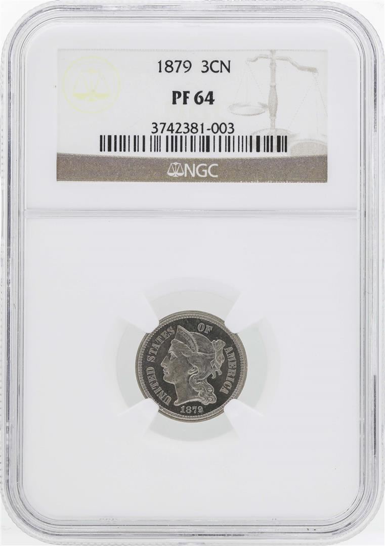 One 1879 Three Cent Nickel Proof Coin NGC PF64. NGC Certified.