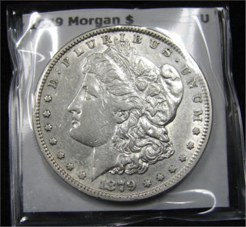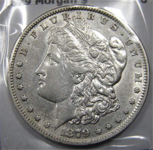 1879 U.S. MORGAN SILVER DOLLAR. AU.