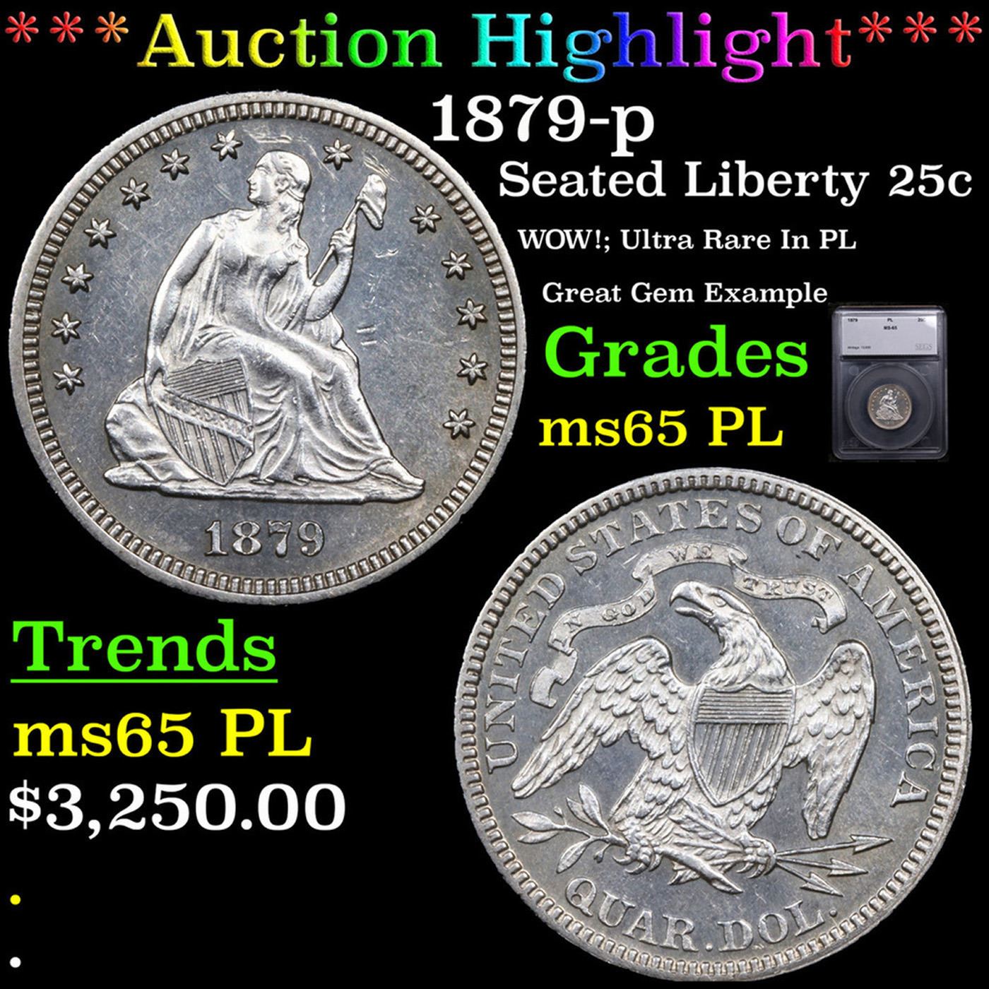 1879-p Seated Liberty Quarter 25c Graded ms65 PL BY SEGS.