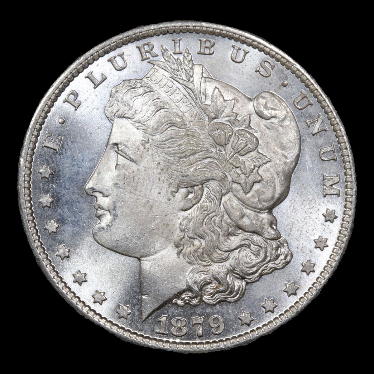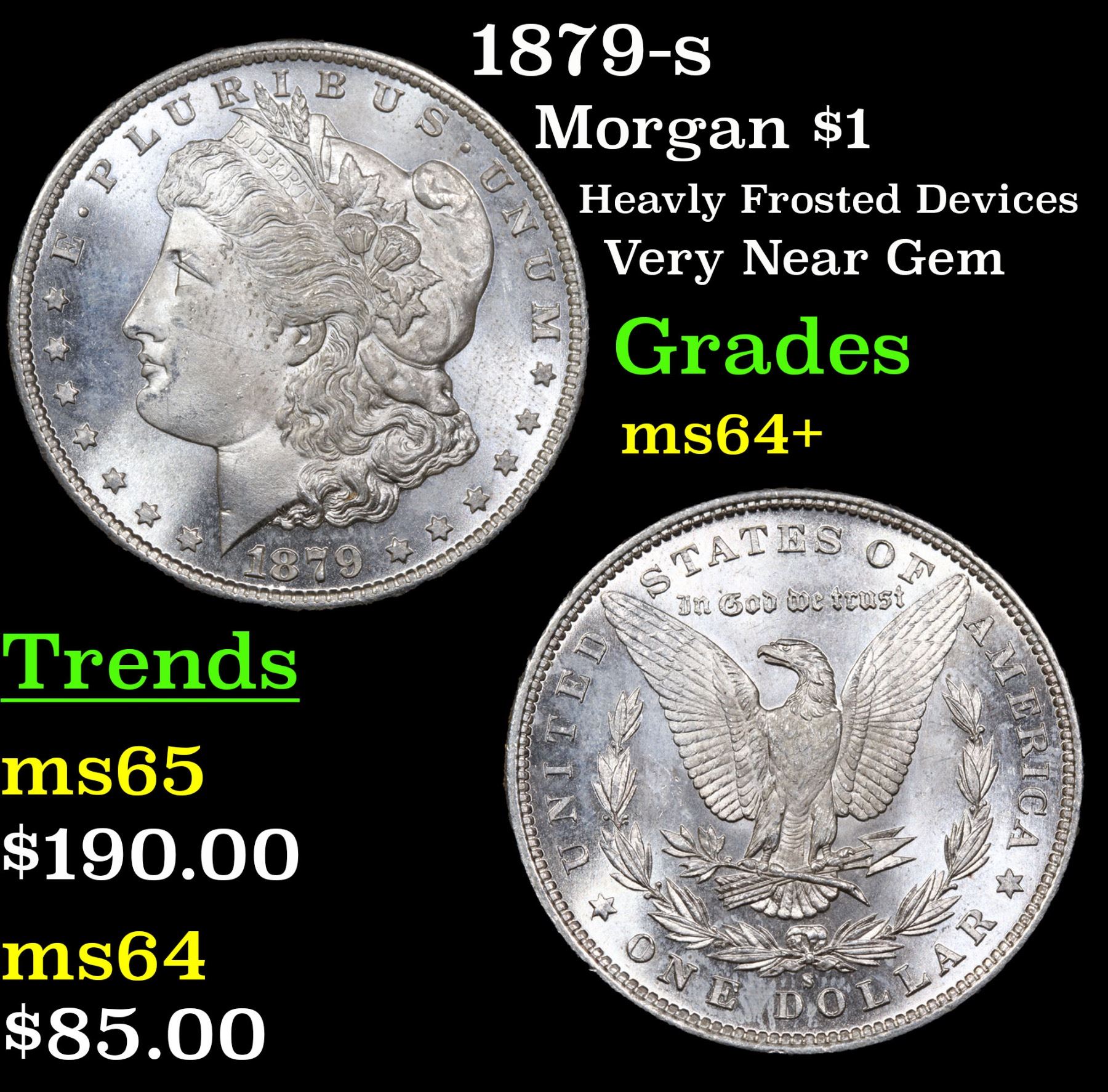 1879-s Heavly Frosted Devices Very Near Gem Morgan Dollar $1 Grades Choice+ Unc.