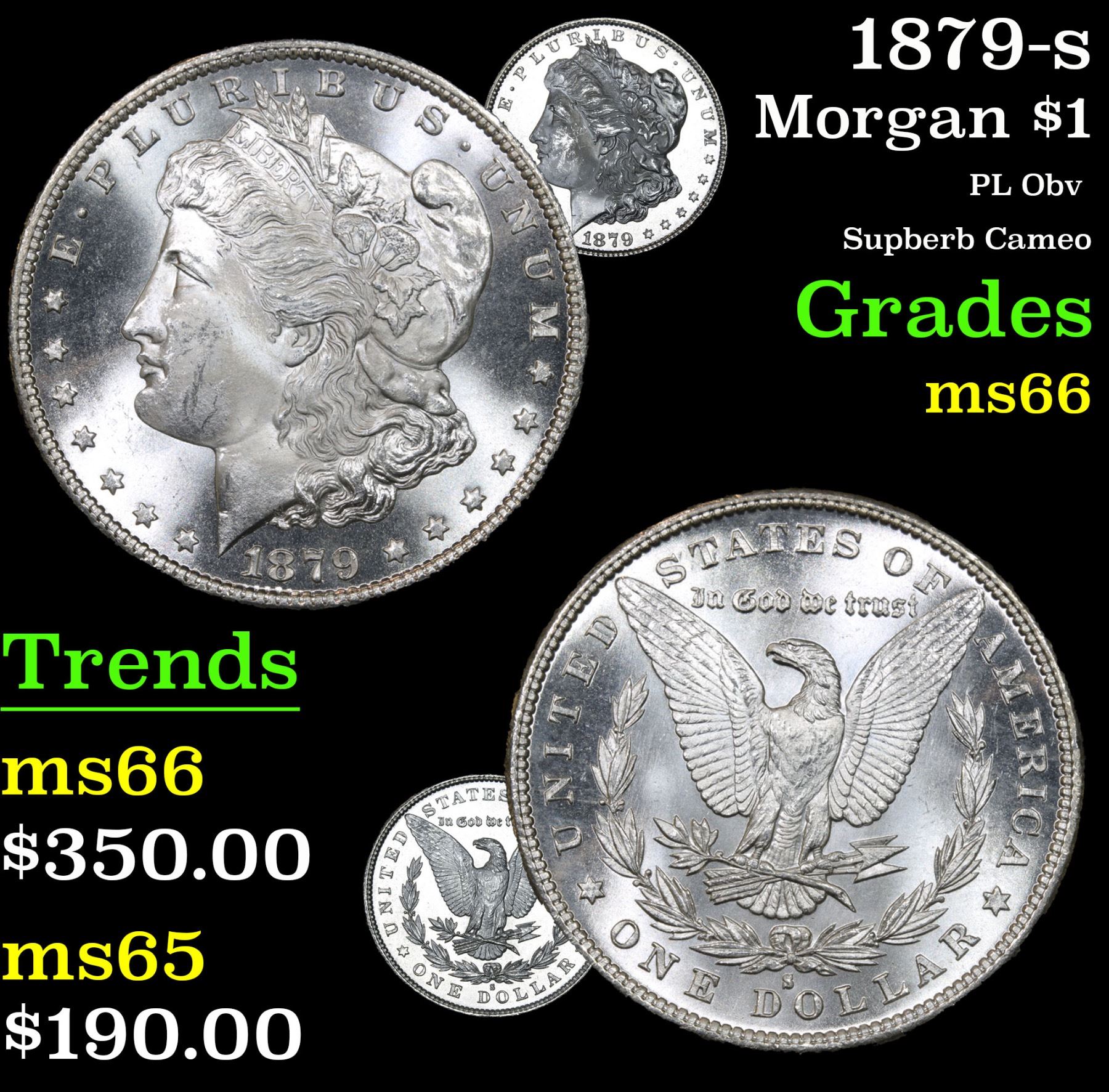 1879-s Morgan Dollar $1 Grades GEM+ Unc. PL Obv Superb Cameo