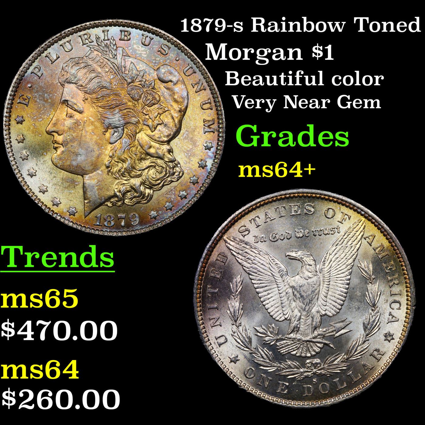 1879-s Rainbow Toned Morgan Dollar $1 Grades Choice+ Unc.