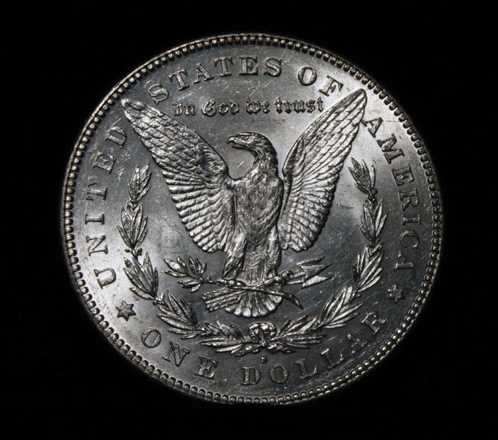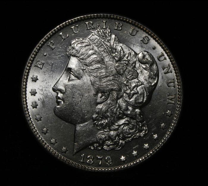 A very nice Blast White example of a very tough variety. Due to slow transportation of the period, the new reverse dies did not make it to San Francisco in 1879 on time. The production run briefly began with the reverse dies from 1878 but this was a short run as the dies arrived shortly after production began and the majority of the year were struck with the new dies. Of the 9 million 1879-s minted only 1.5% were with the reverse of 78. Coin World's Coin Values lists ms64 at $2000 and The Wholesale Greysheet Value is $925. Estimated Value $1200
