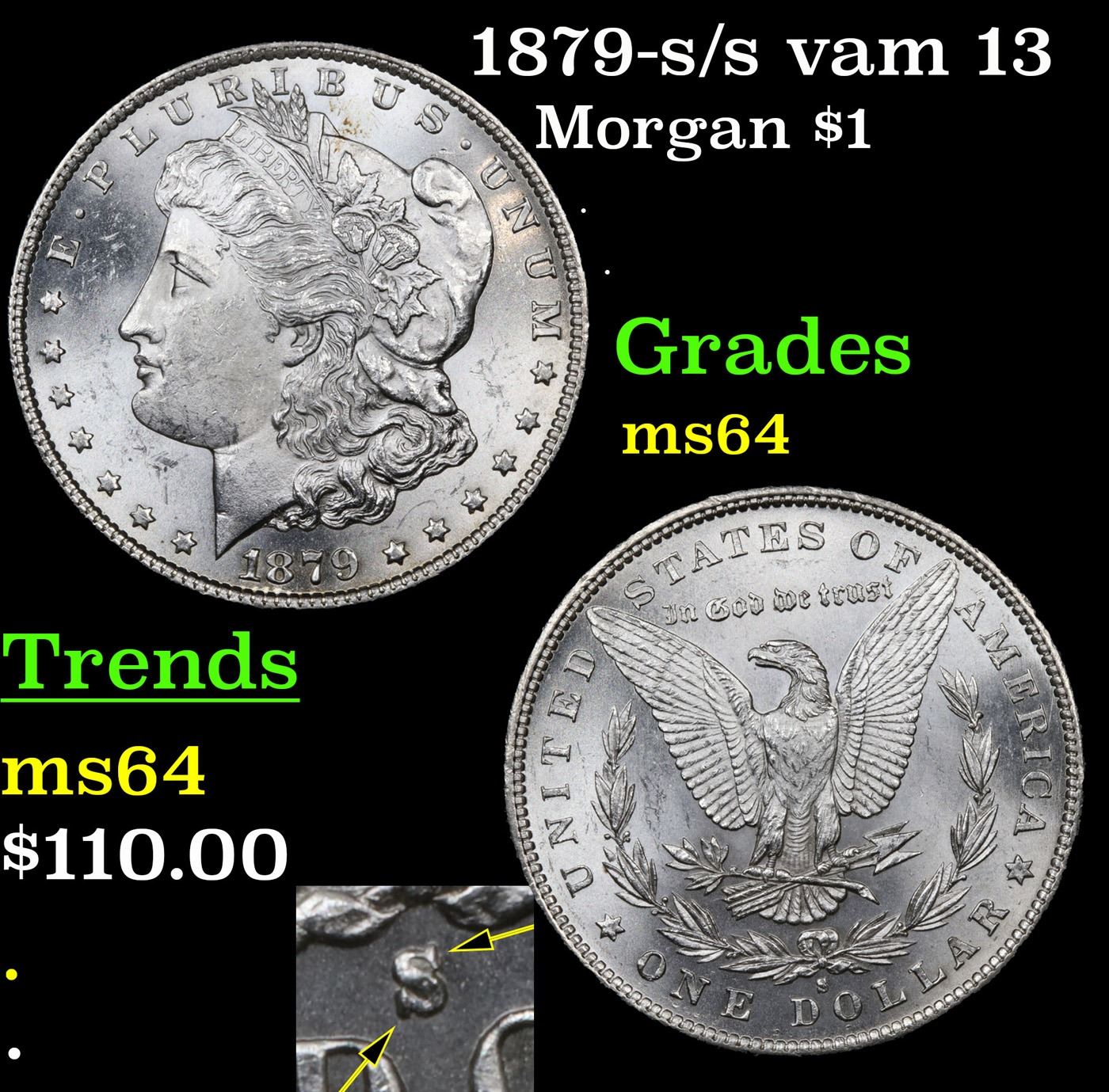1879-s /s vam 13 Morgan Dollar $1 Grades Choice Unc.