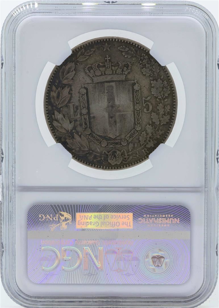 One 1879R Italy 5 Lira Silver Coin NGC VF30. NGC Certified.