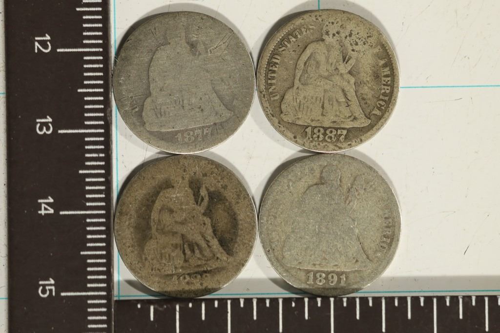 188?, 1877, 1887 & 1891 SILVER SEATED LIBERTY DIME