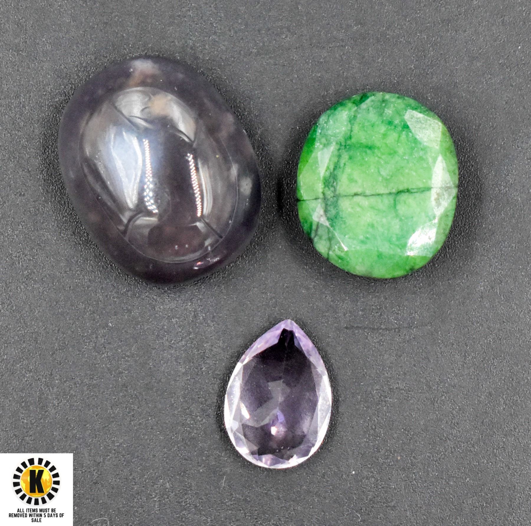 UNHEATED/AMETHYST 10.1X14MM,EMERALD 15.2X 17.7MM COLOUR ENHANCE/CHAL 17.8X22MM