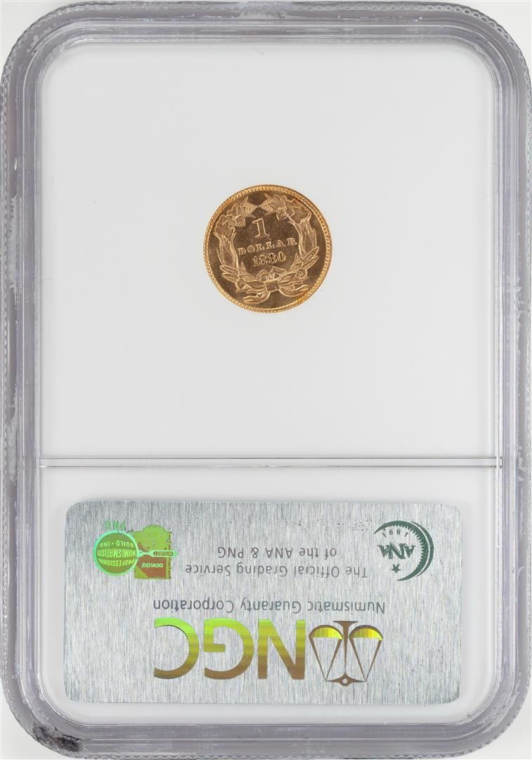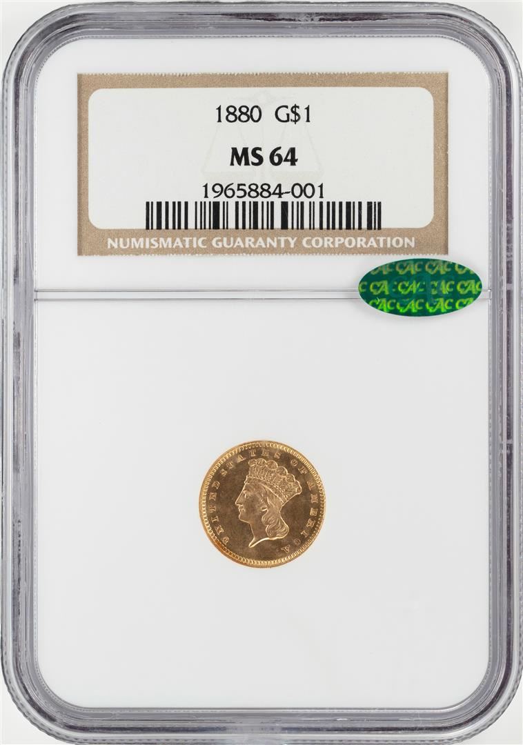 One 1880 $1 Indian Princess Head Gold Dollar Coin NGC MS64 CAC. NGC Certified.