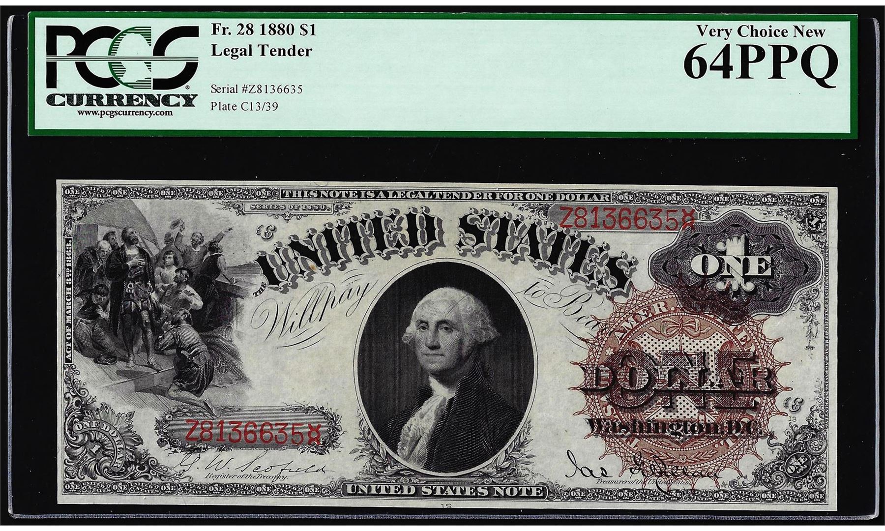 One 1880 $1 Legal Tender Note Fr.28 PCGS Very Choice New 64PPQ. PCGS Graded.