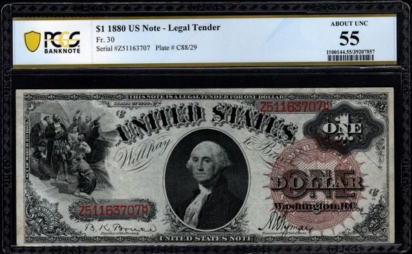 One 1880 $1 Legal Tender Note PCGS 55.