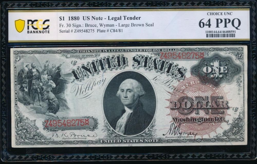 One 1880 $1 Legal Tender Note PCGS 64PPQ.