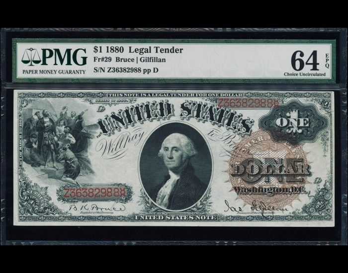 One 1880 $1 Legal Tender Note PMG 64EPQ.