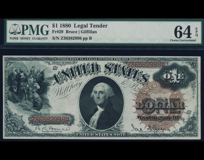 One 1880 $1 Legal Tender Note PMG 64EPQ.