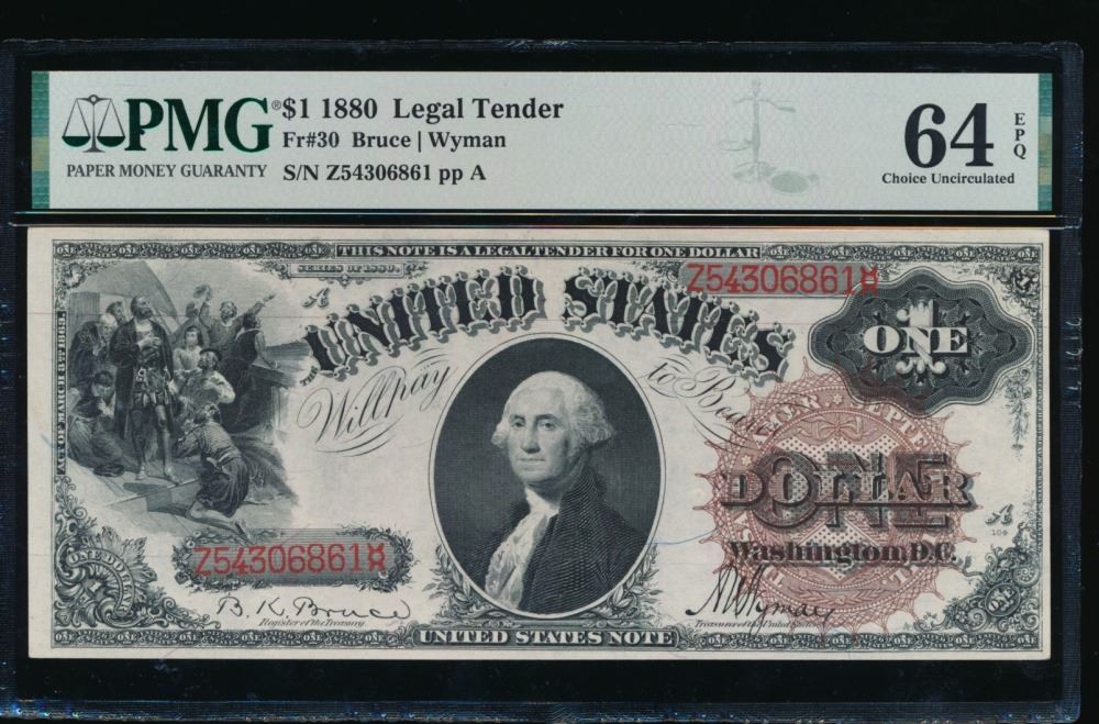 One 1880 $1 Legal Tender Note PMG 64EPQ.