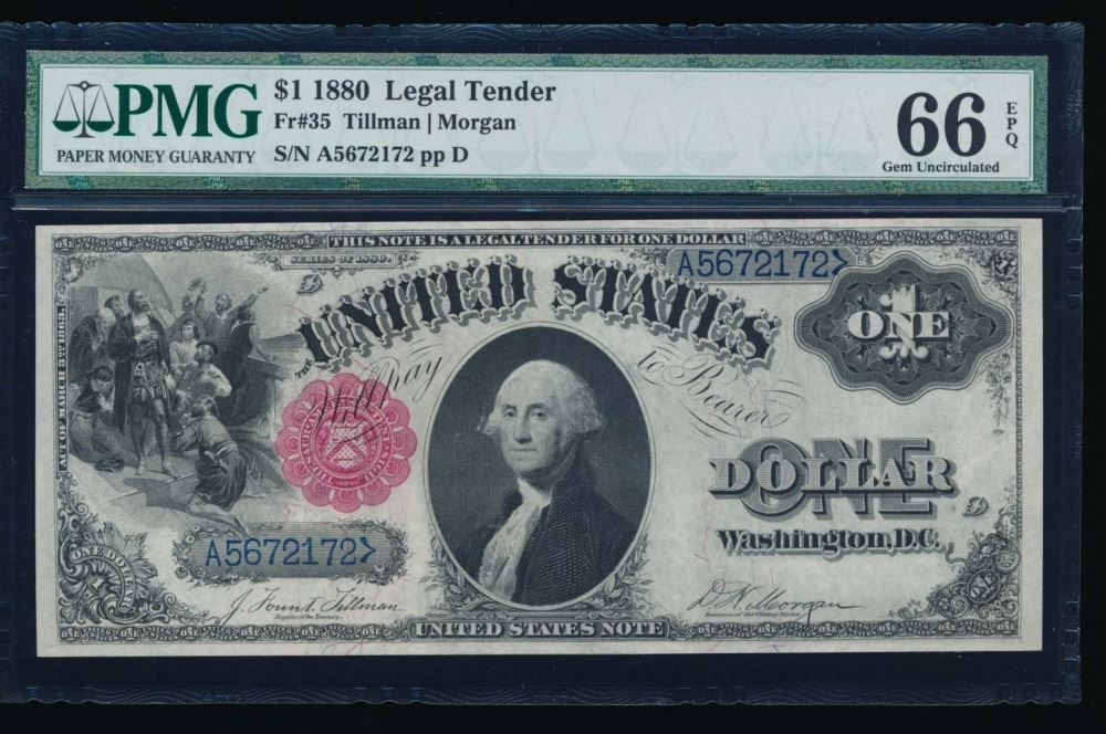 One 1880 $1 Legal Tender Note PMG 66EPQ.