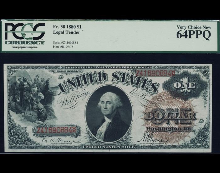 One 1880 $1 Legal Tender PCGS Note 64PPQ.