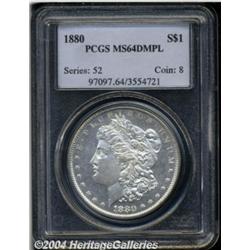 <table><tr><td><TABLE cellSpacing=0 cellPadding=0 width="100%" bgColor=#000000 border=0><TBODY> <TR><TD width="100%"><TABLE cellSpacing=1 cellPadding=3 width="100%" border=0><TBODY><TR><TD width="100%" bgColor=#79735c><FONT face=arial color=#ffffff size=3><B>Description</B> </FONT></TD></TR><TR><TD width="100%" bgColor=#ffffff><FONT face=arial size=2><B>1880 $1 MS64 Deep Mirror Prooflike PCGS.</B></I> Well struck with dramatically reflective, light-gray fields, and fully frosted silvery-white devices. There are a few wispy field marks on each side, and a couple of faint slide marks on Liberty's cheek, which seemingly limit the grade to near-Gem. Still a highly attractive and conditionally scarce item. </FONT></TD></TR></TBODY></TABLE></TD></TR></TBODY></TABLE><BR><A name=PricesRealized></A><TABLE cellSpacing=0 cellPadding=0 width="100%" bgColor=#000000 border=0><TBODY><TR><TD width="100%"><TABLE cellSpacing=1 cellPadding=3 width="100%" border=0><TBODY><TR><TD width="100%" bgColor=#79735c><A name=PR><FONT face=arial color=#ffffff size=3><B>Previous Prices from Heritage Auctions</B> </FONT></A></TD></TR><TR><TD bgColor=#f6f6ed><TABLE cellSpacing=0 cellPadding=0 width="100%" border=1><TBODY><TR><TD align=middle width="33%"><B>Date</B></TD><TD align=middle width="33%"><B>Service</B></TD><TD align=middle width="33%"><B>Price</B></TD></TR><TR bgColor=whitesmoke><TD width="33%"><B>09/20/2003</B></TD><TD width="33%">PCGS</TD><TD width="33%">$1,178.75</TD></TR><TR bgColor=whitesmoke><TD width="33%"><B>03/01/2003</B></TD><TD width="33%">PCGS</TD><TD width="33%">$920.00</TD></TR><TR bgColor=whitesmoke><TD width="33%"><B>08/08/2001</B></TD><TD width="33%">PCGS</TD><TD width="33%">$1,955.00</TD></TR><TR bgColor=whitesmoke><TD width="33%"><B>05/05/2000</B></TD><TD width="33%">PCGS</TD><TD width="33%">$575.00</TD></TR><TR bgColor=whitesmoke><TD width="33%"><B>06/01/1997</B></TD><TD width="33%">PCGS</TD><TD width="33%">$990.00</TD></TR><TR bgColor=whitesmoke><TD width="33%"><B>03/01/1998</B></TD><TD width="33%">PCGS</TD><TD width="33%">$1,155.00</TD></TR></TBODY></TABLE></TD></TR><TR><TD bgColor=#ffffff><FONT face=arial size=1 ?>PLEASE NOTE: All prices realized reflect the final hammer price PLUS the buyer's premium in auctions that charge a buyer's premium. Each item has a notation at the top of the listing indicating whether that lot included a buyer's premium. Example: A item that sells with a final hammer price of $100 and a 20% buyer's premium will display with a price realized of $120. All information listed is intended to be as accurate as possible, but errors are possible. Please use this guide carefully and inform us of any inaccuracies. </FONT></TD></TR></TBODY></TABLE></TD></TR></TBODY></TABLE><BR><TABLE cellSpacing=0 cellPadding=0 width="100%" bgColor=#000000 border=0><TBODY><TR><TD width="100%"><TABLE cellSpacing=1 cellPadding=3 width="100%" border=0><TBODY><TR><TD width="100%" bgColor=#79735c colSpan=6><FONT face=arial color=#ffffff size=3><B>Price Guide*</B> </FONT></TD></TR><TR bgColor=#f6f6ed><TD align=middle><B>Grade</B> </TD><TD align=middle><B>Coin World<BR>(Trends)</B> </TD><TD align=middle><B>Numismedia<BR>Retail</B> </TD><TD align=middle><B>Numismedia<BR>Wholesale</B> </TD><TD align=middle><B>Coin<BR>Universe</B> </TD><TD align=middle><B>Heritage<BR>Value Index</B> </TD></TR><TR bgColor=#ffffff><TD align=middle>63</TD><TD align=right>$265.00</TD><TD align=right>$225.00</TD><TD align=right>$180.00</TD><TD align=right>$260.00</TD><TD align=right>$179.50</TD></TR><TR style="FONT-WEIGHT: bold" bgColor=#cccfdd><TD align=middle>64</TD><TD align=right>$950.00</TD><TD align=right>---</TD><TD align=right>$1,075.00</TD><TD align=right>$780.00</TD><TD align=right>$726.25</TD></TR><TR bgColor=#ffffff><TD align=middle>65</TD><TD align=right>$3,375.00</TD><TD align=right>---</TD><TD align=right>$2,975.00</TD><TD align=right>$4,200.00</TD><TD align=right>$2,562.50</TD></TR><TR bgColor=#ffffff><TD colSpan=6><FONT size=1>*All information listed is intended to be as accurate as possible, but errors are possible. No item may be returned or refused based on this information which is provided as a service to our customers. You should contact each pricing source directly to determine the accuracy of this information. </FONT></TD></TR></TBODY></TABLE></TD></TR></TBODY></TABLE><BR><TABLE cellSpacing=0 cellPadding=0 width="100%" bgColor=#000000 border=0><TBODY><TR><TD width="100%"><TABLE cellSpacing=1 cellPadding=3 width="100%" border=0><TBODY><TR><TD width="100%" bgColor=#79735c><FONT face=arial color=#ffffff size=3><B>Population Guide</B> </FONT></TD></TR><TR bgColor=#ffffff><TD align=middle><!-- Begin Output of Population Grid--><TABLE cellSpacing=0 cellPadding=0 width="100%" border=0><TBODY><TR><TD vAlign=center><TABLE cellSpacing=0 width="100%" border=1 cellsadding="3"><TBODY><TR><TD vAlign=center><TABLE cellSpacing=0 cellPadding=3 width="100%" border=1><TBODY><TR><TD vAlign=center align=middle bgColor=#f0f1e8 colSpan=2 <CENTER><FONT face=Arial size=2><B>PCGS Pop </B></FONT><CENTER></CENTER></TD><TD vAlign=center align=middle bgColor=#f0f1e8 colSpan=2><CENTER><FONT face=Arial size=2><B>NGC Pop</B></CENTER></FONT></TD></TR><TR><TD vAlign=center><FONT face=Arial size=2>(64)</FONT> </TD><TD vAlign=center align=right><FONT face=Arial size=2>62</FONT> </TD><TD vAlign=center><FONT face=Arial size=2>(64)</FONT> </TD><TD vAlign=center align=right><FONT face=Arial size=2>0</FONT> </TD></TR><TR><TD vAlign=center><FONT face=Arial size=2>(>64)</FONT> </TD><TD vAlign=center align=right><FONT face=Arial size=2>27</FONT> </TD><TD vAlign=center><FONT face=Arial size=2>(>64)</FONT> </TD><TD vAlign=center align=right><FONT face=Arial size=2>0</FONT> </TD></TR></TBODY></TABLE></TD></TR></TBODY></TABLE></TD></TR></TBODY></TABLE><!-- End Output of Population Grid--></TD></TR></TBODY></TABLE></TD></TR></TBODY></TABLE><BR><TABLE cellSpacing=0 cellPadding=0 width="100%" bgColor=#000000 border=0><TBODY><TR> <font color='#000