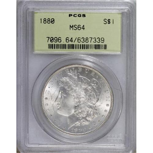 <B>1880 $1 MS64 PCGS.</B></I> PCGS Population (2833/808). NGC Census: (3275/591). Mintage: 12,601,355. Numismedia Wsl. Price for NGC/PCGS coin in MS64: $108. (#7096)<BR><BR><B>Coin Engraver:</B> George T. Morgan<BR><BR><b>Shipping:</b> Coins & Currency (<a target="_blank" href="http://www.heritageauctions.com/common/shipping.php">view shipping information</a>\)