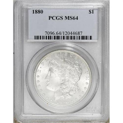 <B>1880 $1 MS64 PCGS.</B></I> PCGS Population (2944/911). NGC Census: (3405/595). Mintage: 12,601,355. Numismedia Wsl. Price for NGC/PCGS coin in MS64: $110. (#7096)<BR><BR><B>Coin Engraver:</B> George T. Morgan<BR><BR><b>Shipping:</b> Coins & Currency (<a target="_blank" href="http://www.heritageauctions.com/common/shipping.php">view shipping information</a>)