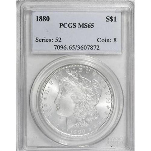<B>1880 $1 MS65 PCGS.</B></I> . PCGS Population (867/76). NGC Census: (569/34). Mintage: 12,601,355. Numismedia Wsl. Price for NGC/PCGS coin in MS65: $550. (#7096)<BR><BR><B>Coin Engraver:</B> George T. Morgan<BR><BR><b>Shipping:</b> Coins & Currency (<a target="_blank" href="http://www.heritageauctions.com/common/shipping.php">view shipping information</a>)
