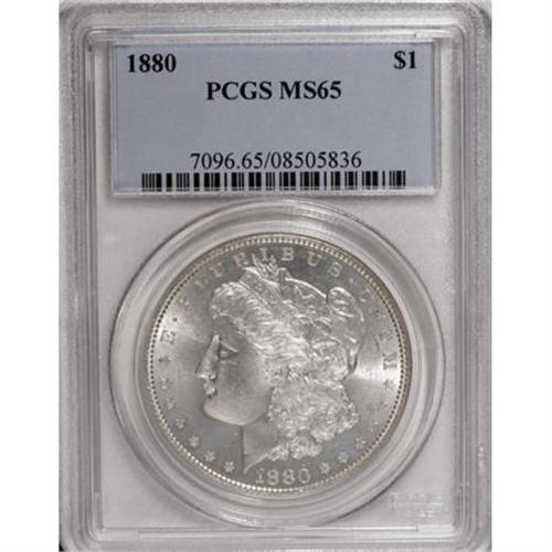 <B>1880 $1 MS65 PCGS.</B></I> A crisply detailed and uncommonly attractive example of this popular Philadelphia issue, strongly lustrous and minimally toned. PCGS has certified 76 finer examples (1/08).<BR><I>From The Oxford Collection.</B></I><BR><BR><B>Coin Engraver:</B> George T. Morgan<BR><BR><b>Shipping:</b> Coins & Currency (<a target="_blank" href="http://www.heritageauctions.com/common/shipping.php">view shipping information</a>)