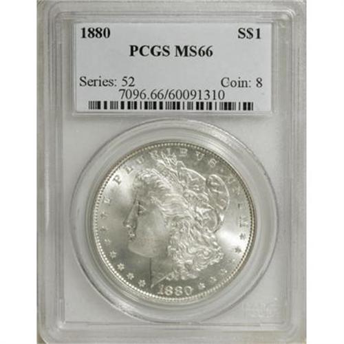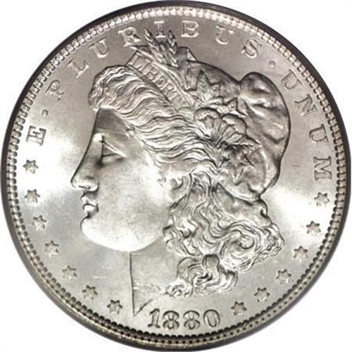 <B>1880 $1 MS66 PCGS.</B></I> The 1880 was a massively produced issue with more than 12 million pieces struck. And yet, it is one of the great condition rarities among Philadelphia coins. This is an exceptionally pleasing and attractive piece that has bright, frosted surfaces. Just a bit of central striking softness is noted on each side. Brilliant throughout with none of the often-seen abrasions of this date. Population: 76 in 66, 0 finer (1/08).<BR><I>From The Jimmy G. PCGS Registry Collection of Morgan Dollars with Varieties.</B></I><BR><BR><B>Coin Engraver:</B> George T. Morgan<BR><BR><b>Shipping:</b> Coins & Currency (<a target="_blank" href="http://www.heritageauctions.com/common/shipping.php">view shipping information</a>)