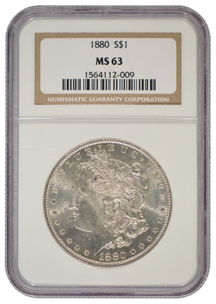 One 1880 $1 Morgan Silver Dollar Coin NGC MS63.