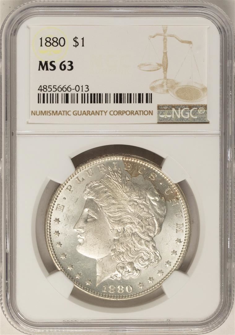 One 1880 $1 Morgan Silver Dollar Coin NGC MS63. NGC Certified.