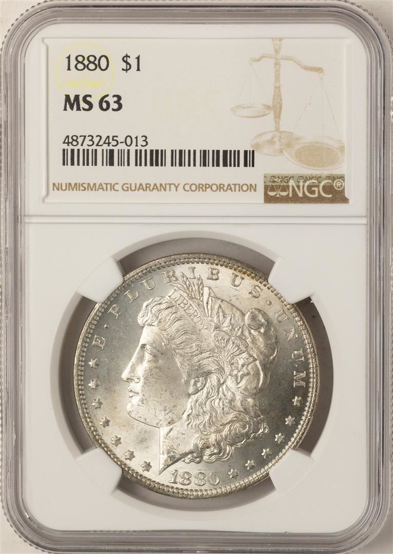 One 1880 $1 Morgan Silver Dollar Coin NGC MS63. NGC Certified.