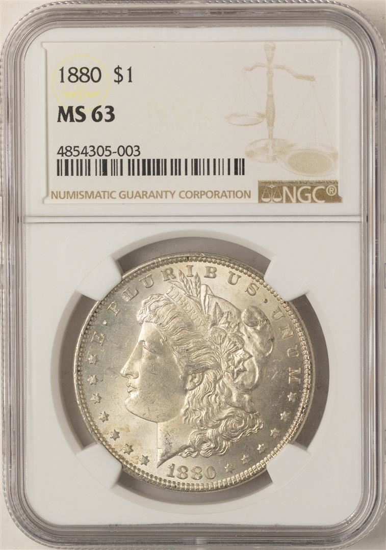 One 1880 $1 Morgan Silver Dollar Coin NGC MS63. NGC Certified.