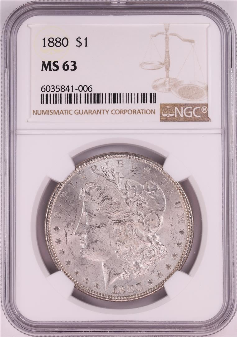 One 1880 $1 Morgan Silver Dollar Coin NGC MS63.
