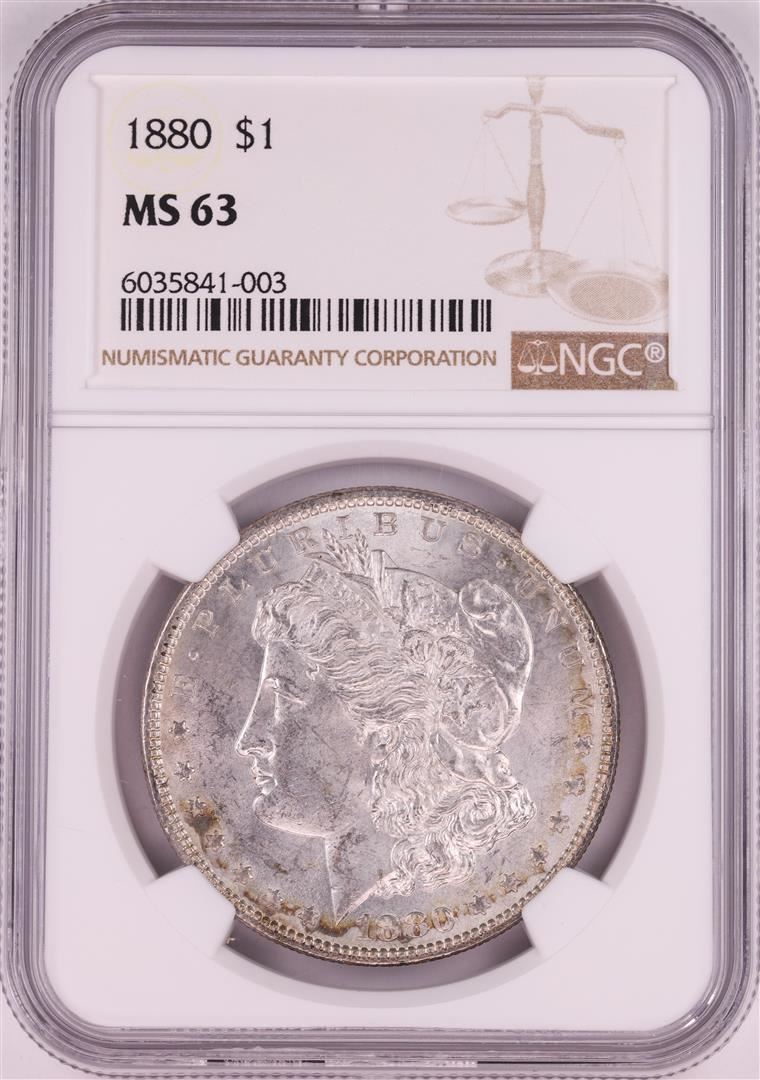 One 1880 $1 Morgan Silver Dollar Coin NGC MS63.