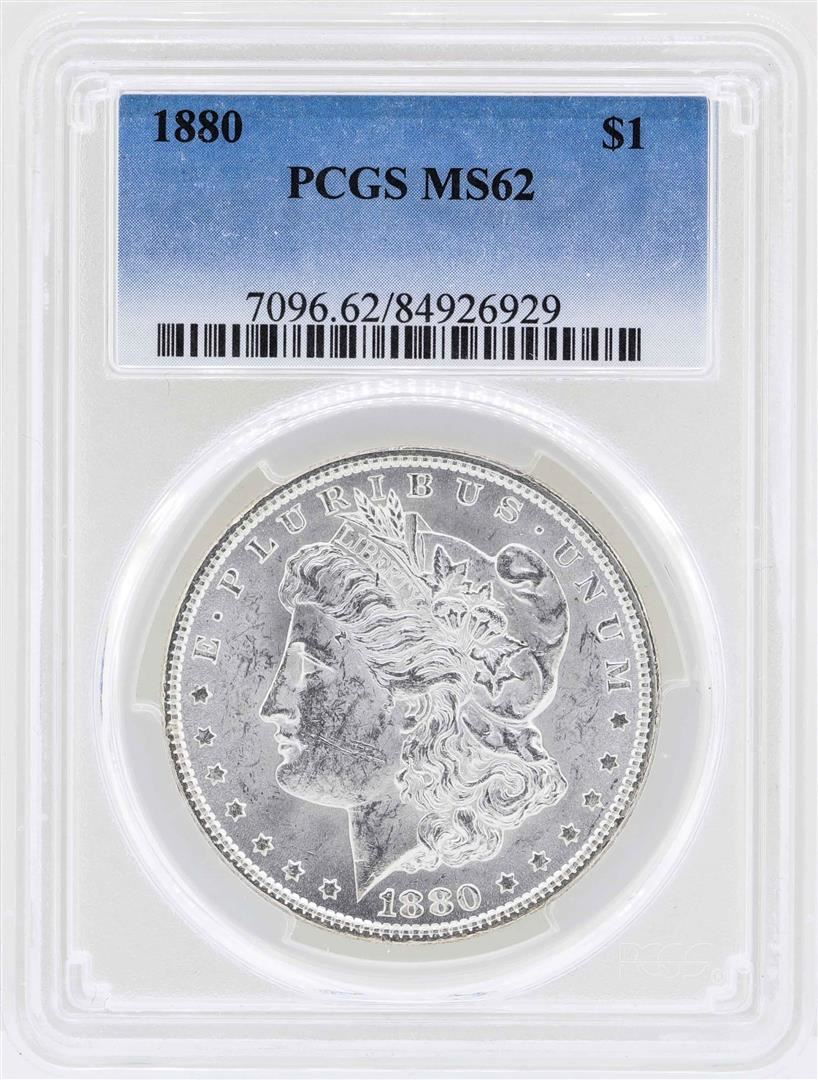 One 1880 $1 Morgan Silver Dollar Coin PCGS MS62. PCGS Graded.