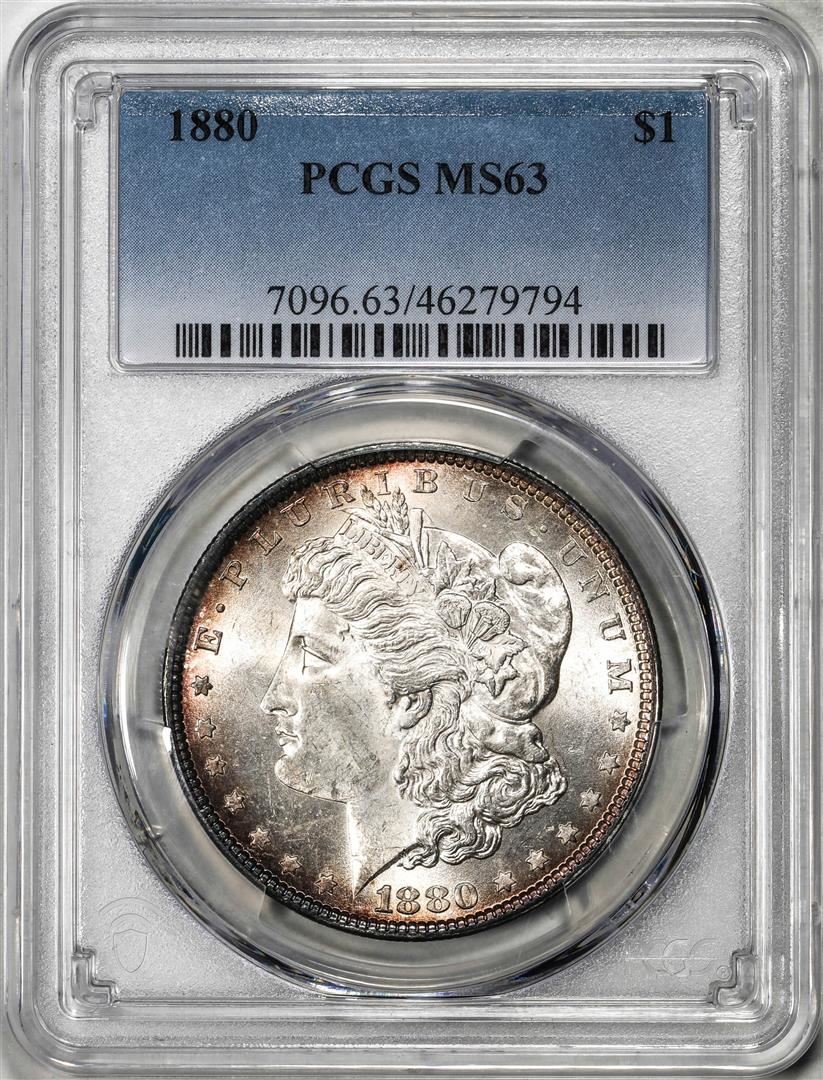 One 1880 $1 Morgan Silver Dollar Coin PCGS MS63. PCGS Graded.