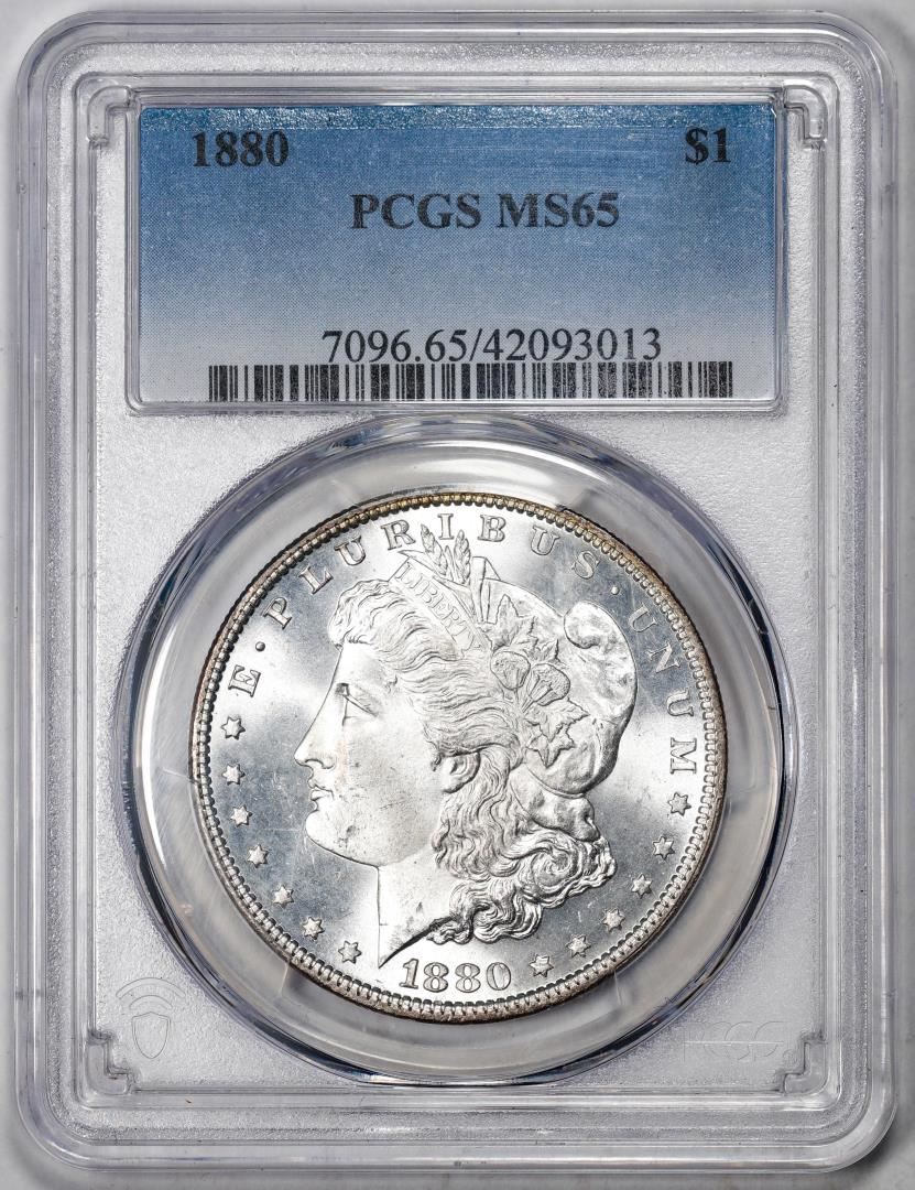 One 1880 $1 Morgan Silver Dollar Coin PCGS MS65. PCGS Graded.