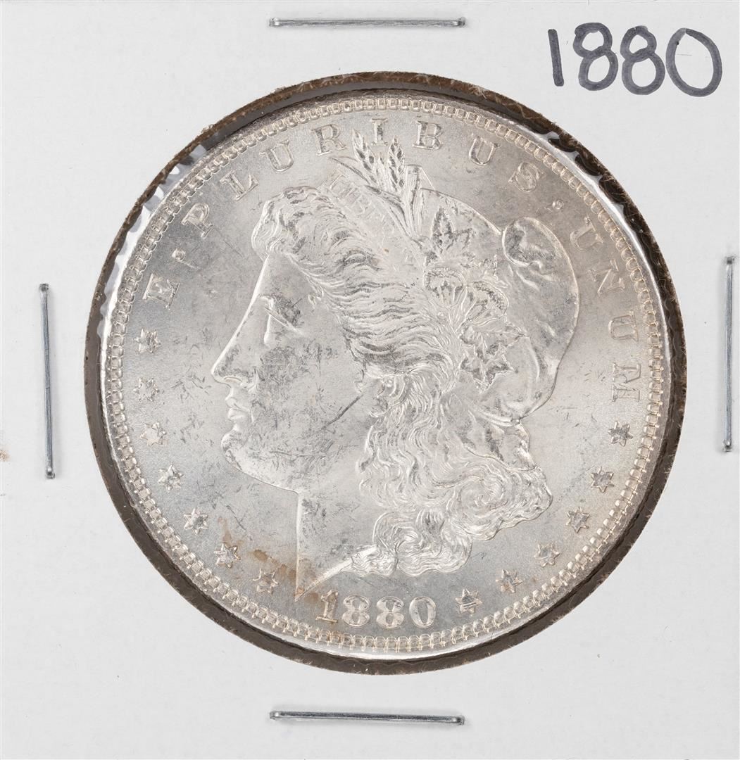 One 1880 $1 Morgan Silver Dollar Coin.