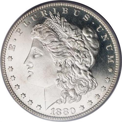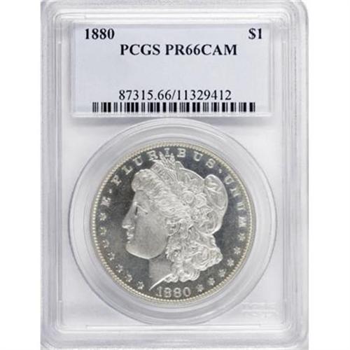 <B>1880 $1 PR66 Cameo PCGS.</B></I> This penetratingly struck Premium Gem features traces of gold patina, and lacks any indication of post-strike contact. A subtle, narrow vertical toning streak ventures from the second L in DOLLAR to the W in WE. IN GOD WE TRUST is lightly die doubled. Population: 14 in 66 Cameo, 9 finer (10/07).<BR><BR><b>Shipping:</b> Coins & Currency (<a target="_blank" href="http://www.heritageauctions.com/common/shipping.php">view shipping information</a>)