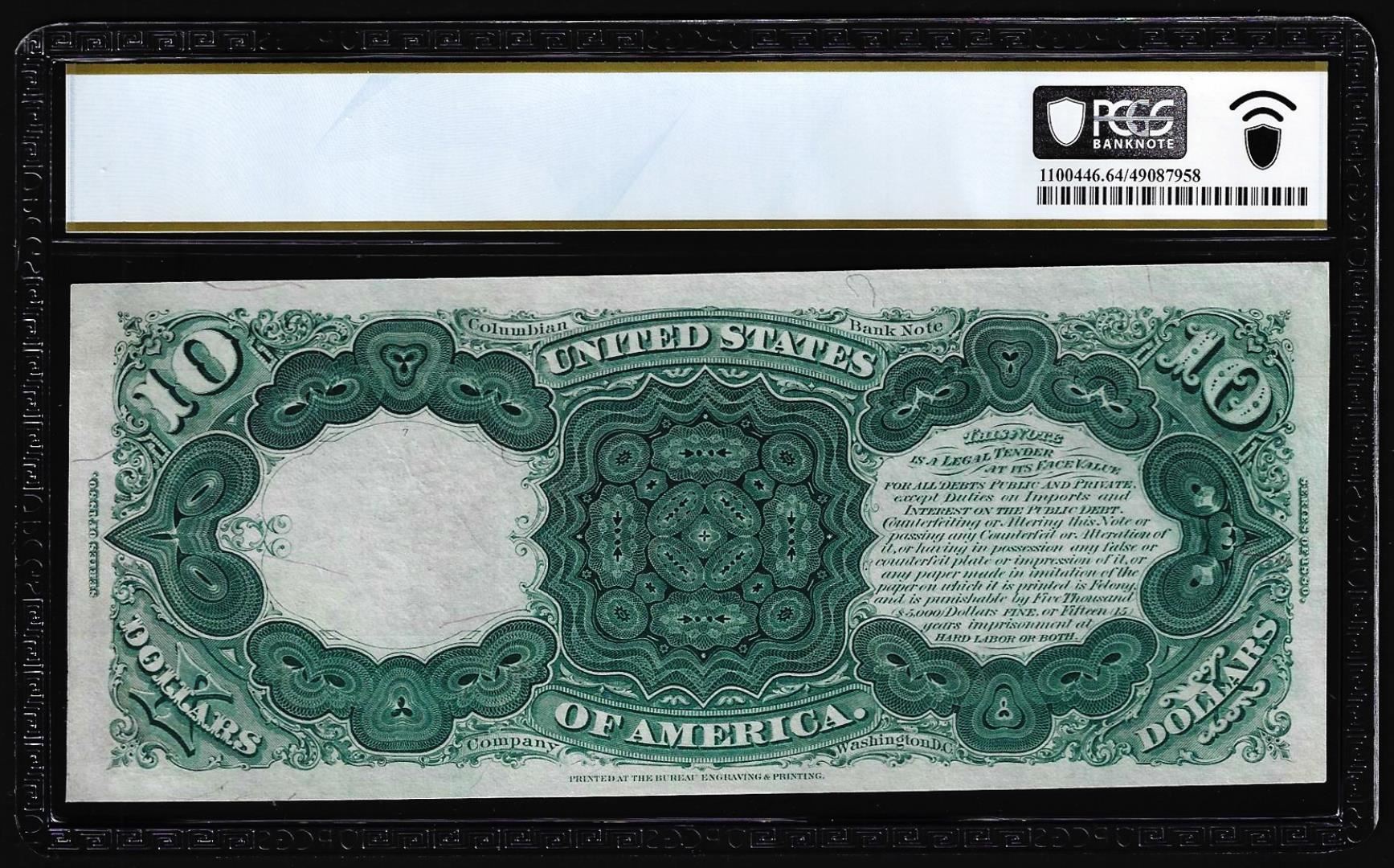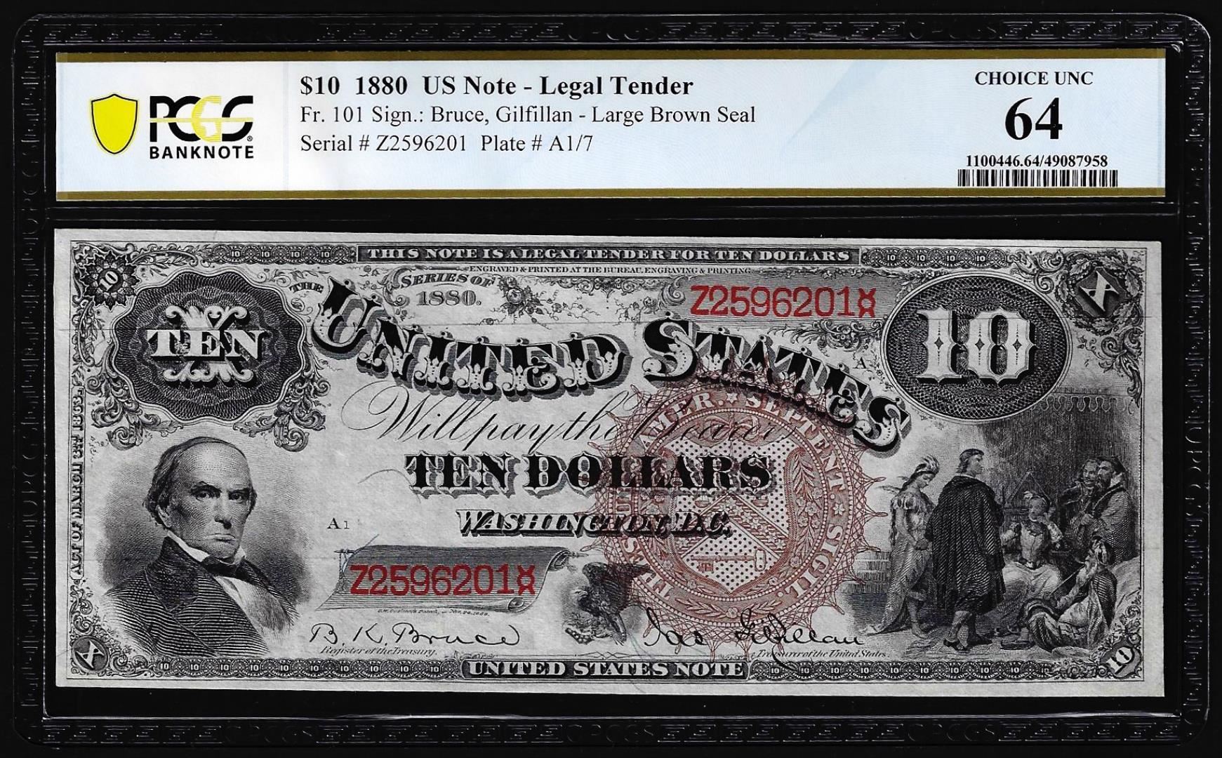 One 1880 $10 'Jackass' Legal Tender Note Fr.101 PCGS Choice Uncirculated 64. PCGS Graded.