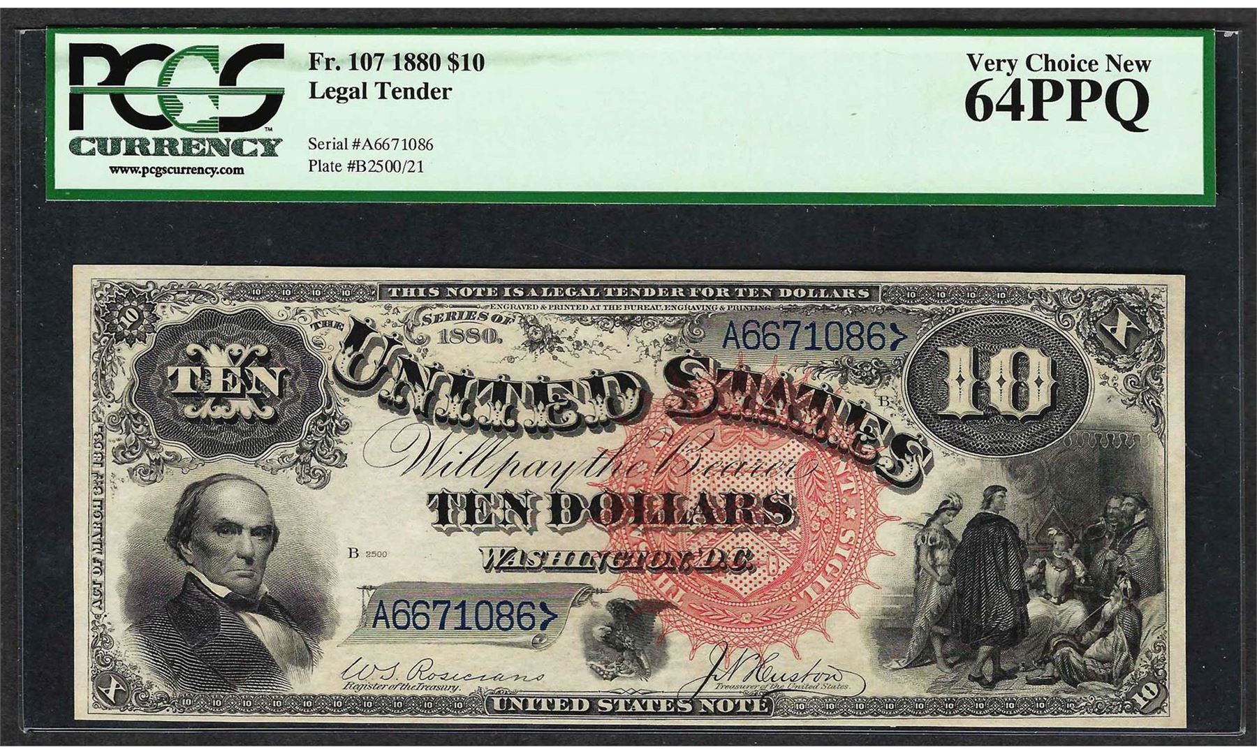 One 1880 $10 Jackass Legal Tender Note Fr.107 PCGS Very Choice New 64PPQ. PCGS Graded.