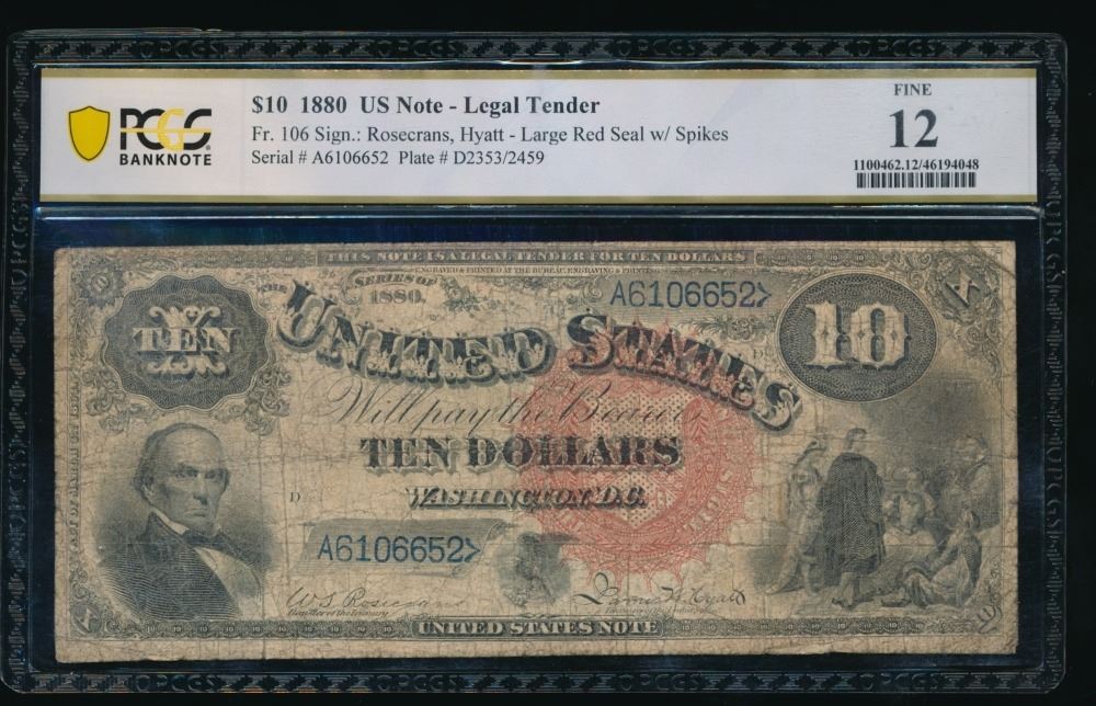 One 1880 $10 Jackass Legal Tender Note PCGS 12.