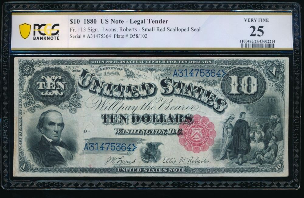 One 1880 $10 Jackass Legal Tender Note PCGS 25.