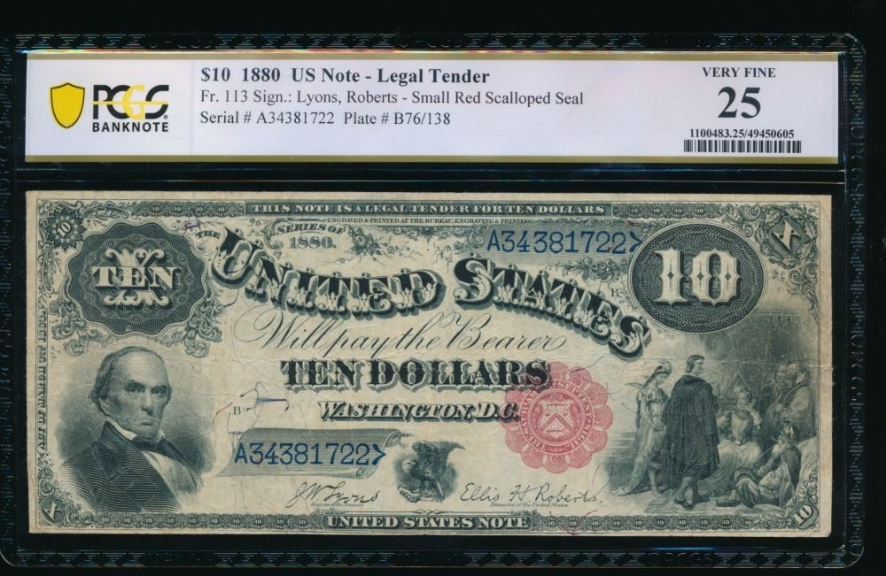 One 1880 $10 Jackass Legal Tender Note PCGS 25.